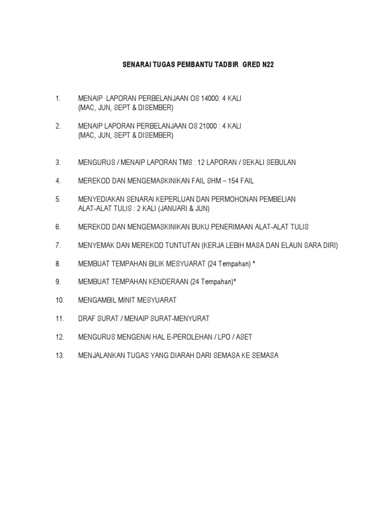 Senarai Tugas Pembantu Tadbir Gred N22 Pdf